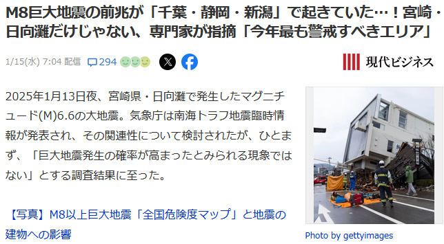 日本地震专家目前已发现大地震的前兆,集中在新潟县、静冈县、千叶县等地。
