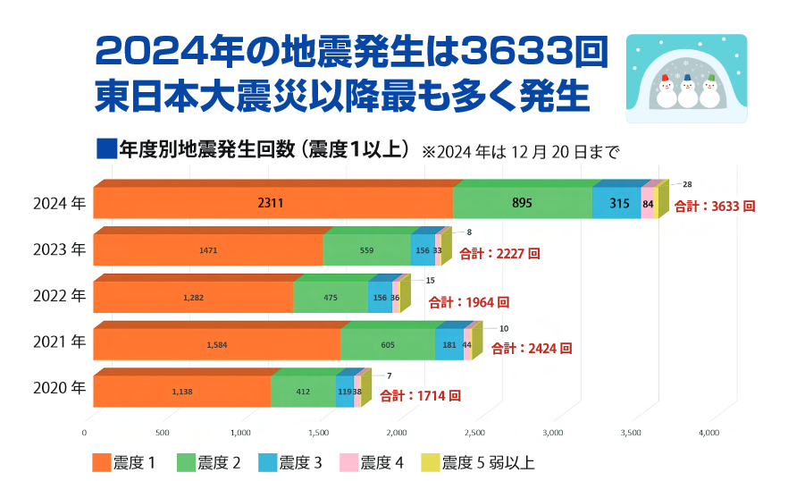 在刚刚过去的2024年,日本发生1级以上的地震共3633次!
