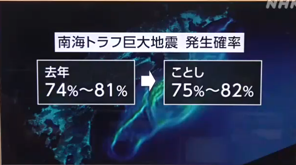 具体来说,去年(令和6年)的地震概率为“74%至81%”,今年(令和7年)增加了1%的概率,升为“75%至82%”。