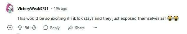 “如果他们把自己曝光后,TikTok最终却没被关闭,那就有意思了……”