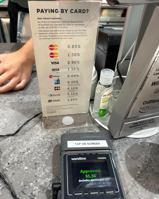 目前的正常情况,澳洲企业向刷卡用户收取附加费用,刷Visa和Mastercard的借记卡会被收取0.5%到1%的附加费。