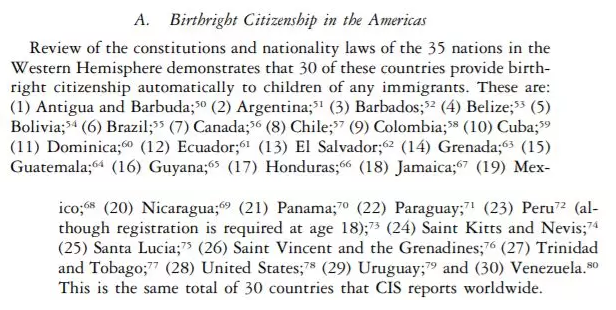 (当然,特朗普的这话并不对,其实世界上有超过30个国家在实行落地国籍制度,诸如加拿大、爱尔兰等,当然有的存在一些限制)