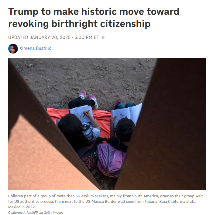 新任总统特朗普已签署命令,要终止美国的出生公民权。