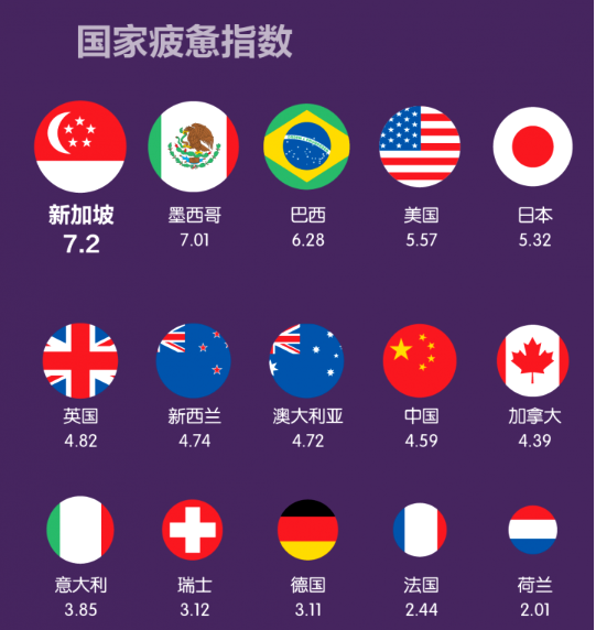 这种高强度的工作和不足的休息,使得新加坡的疲劳指数高达7.2,成为全球最疲惫的国家之一。