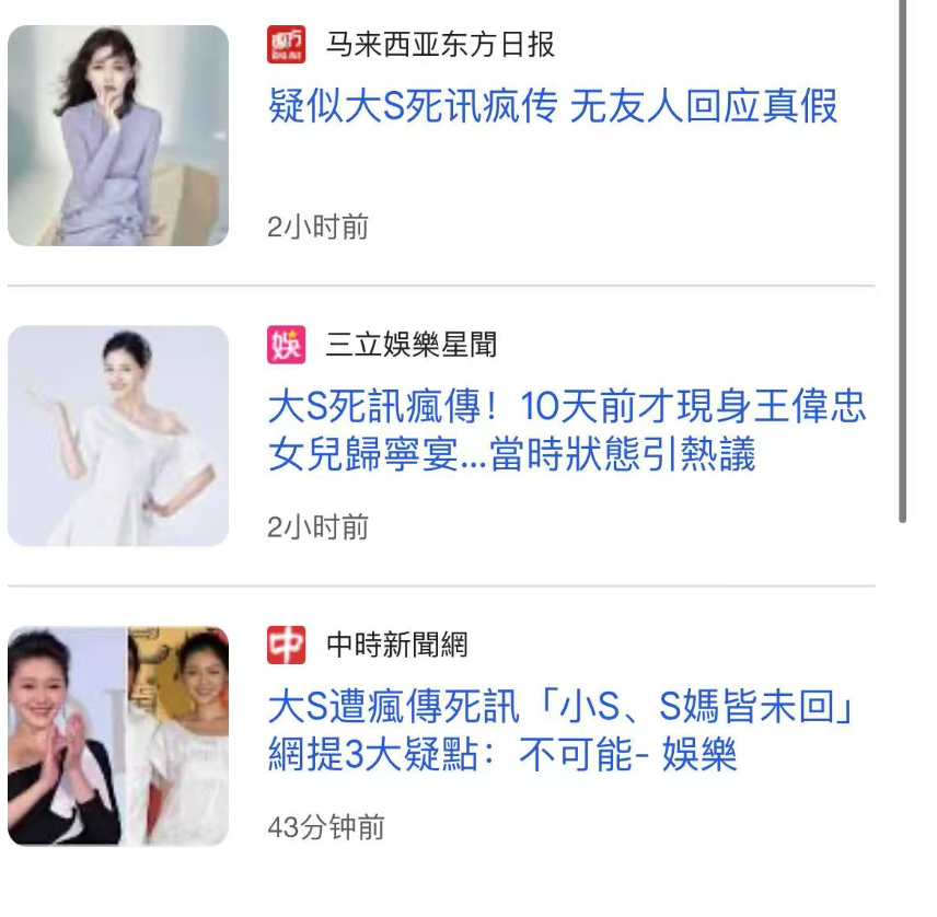 2月2日,有脸书用户发文爆料称,台湾某位大明星因流感突发重症在日本去世,官方稍后会公布,年纪48岁,并暗示该女星出自《流星花园》时代,且育有子女。此消息一出,立刻在社交媒体上引发热议,不少人猜测该明星是大S(徐熙媛)。