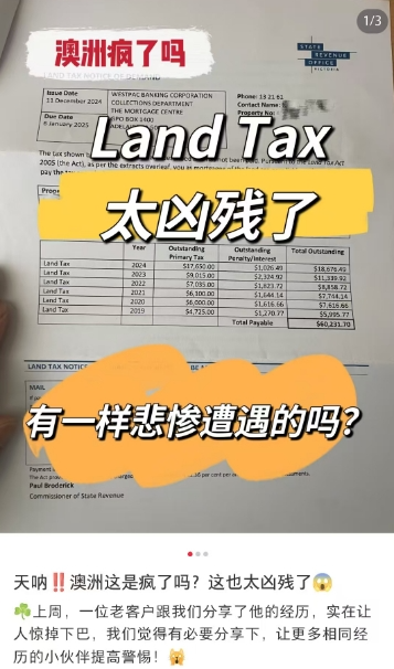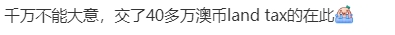 另一位网友也警告称,千万不能大意,自己曾交了40多万澳元的地税。