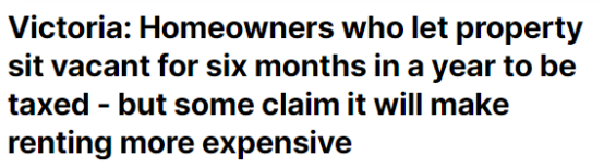例如维州政府就早已宣布,自今年起,一年内空置房屋超过6个月的房主将被要求缴纳额外税款。