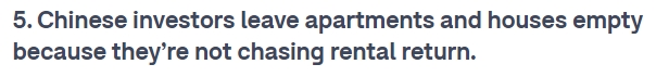 此前澳媒一篇关于中国购房者的迷思中就有一个问题表示,很多中国投资者会将公寓和房屋空置,尤其是一些打算移民澳洲的中国买家,这样可以让房子直到他们搬家为止都是新的。