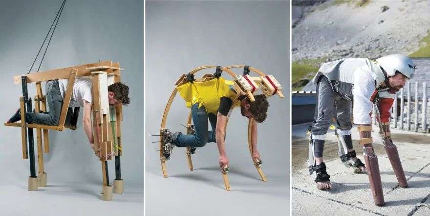 和义肢的使用一样,托马斯设计的山羊前肢和后肢原理是托马斯把自己的手和脚插入其中,控制它们的使用。