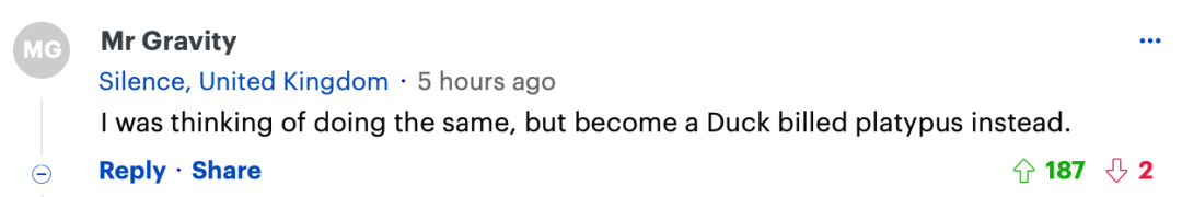 “我原本想做同样的事情,但想变成鸭嘴兽。”