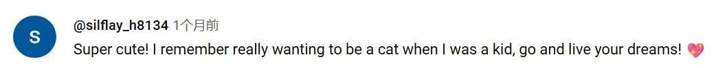 “太可爱了吧!我记得小时候我也特别想变成一只猫,去实现你的梦想吧!”