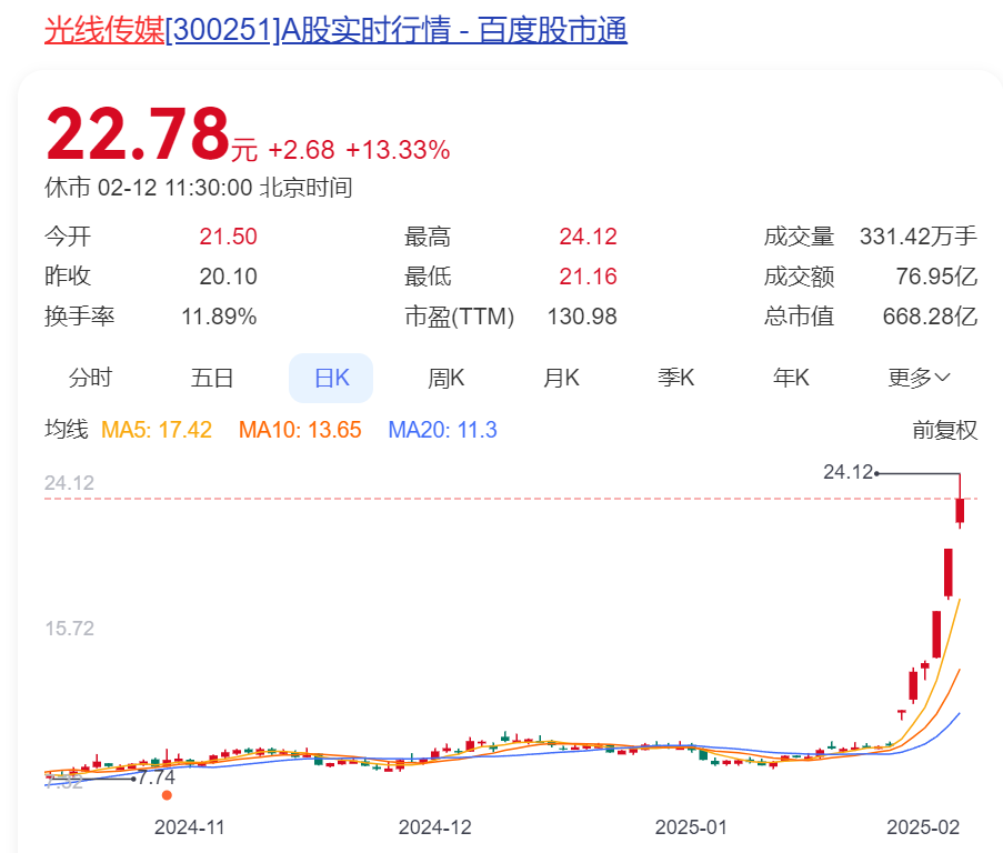 光线传媒股价狂飙