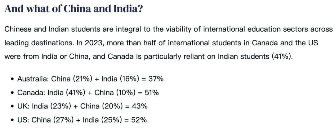 虽然感觉上,来自两大主要生源国中国+印度的比例较高,看起来并不太理想。