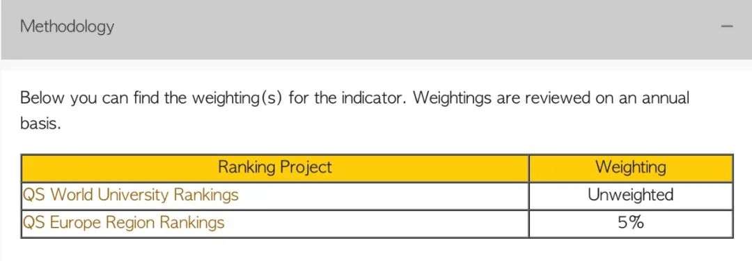 再结合上,在方法论下,QS明确表示的,权重QS将每年都调整一次。