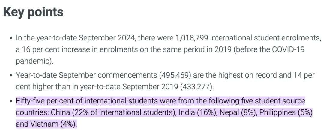 根据澳洲教育部发布的信息,去年年初至去年9月,澳国际学生注册人数达1018799人。