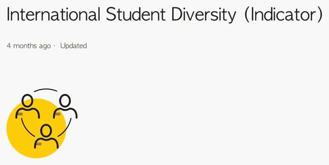 这一指标是之前国际学生比例(ISR)的一个演变升级,目的不仅在衡量一所大学的人数,还在于衡量该大学在吸引来自不同国家和背景的学生方面的成功程度。