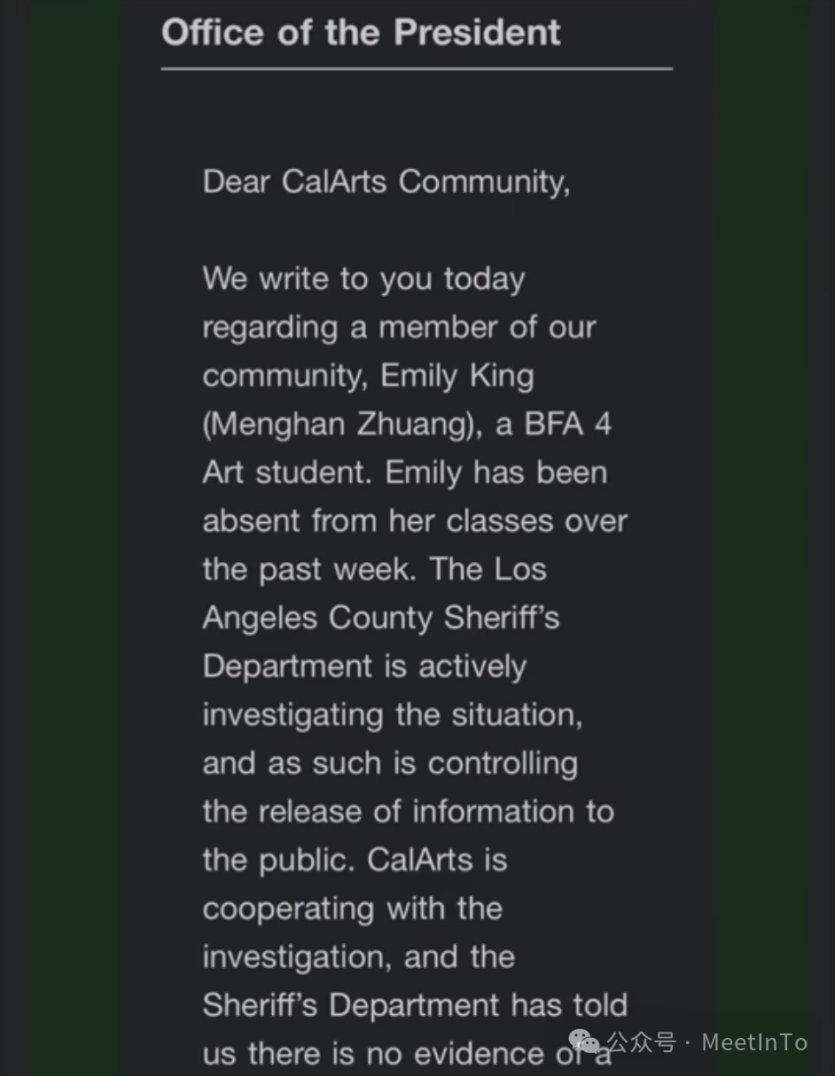 令人痛心的是,没想到,随后学校就发布通知确认庄孟寒在校外被发现遇害,死因是他杀,案件正在警方调查中,庄孟寒的家人已赶到美国。