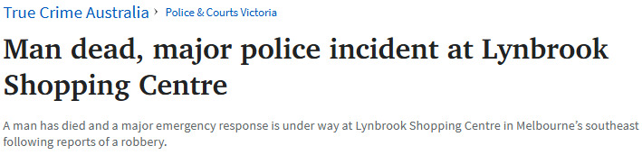 墨尔本东南区的Lynbrook Village购物中心发生一起严重事件,一名男子在现场死亡,大批警察赶到现场!
