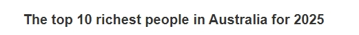 2025澳洲十大富豪榜公布