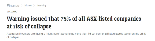 澳媒报道了一个令人惊恐的消息:澳洲证券交易所上市的公司里面,75%的公司都有倒闭风险!