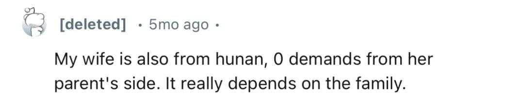 也有网友表示,自己的女友就是湖南人,女友的父母什么也没提。这跟湖南没关系,主要还是取决于对方的家庭。