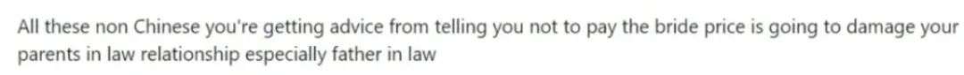 表示所有这些劝你不要给彩礼的,都会破坏你和岳父母的关系。