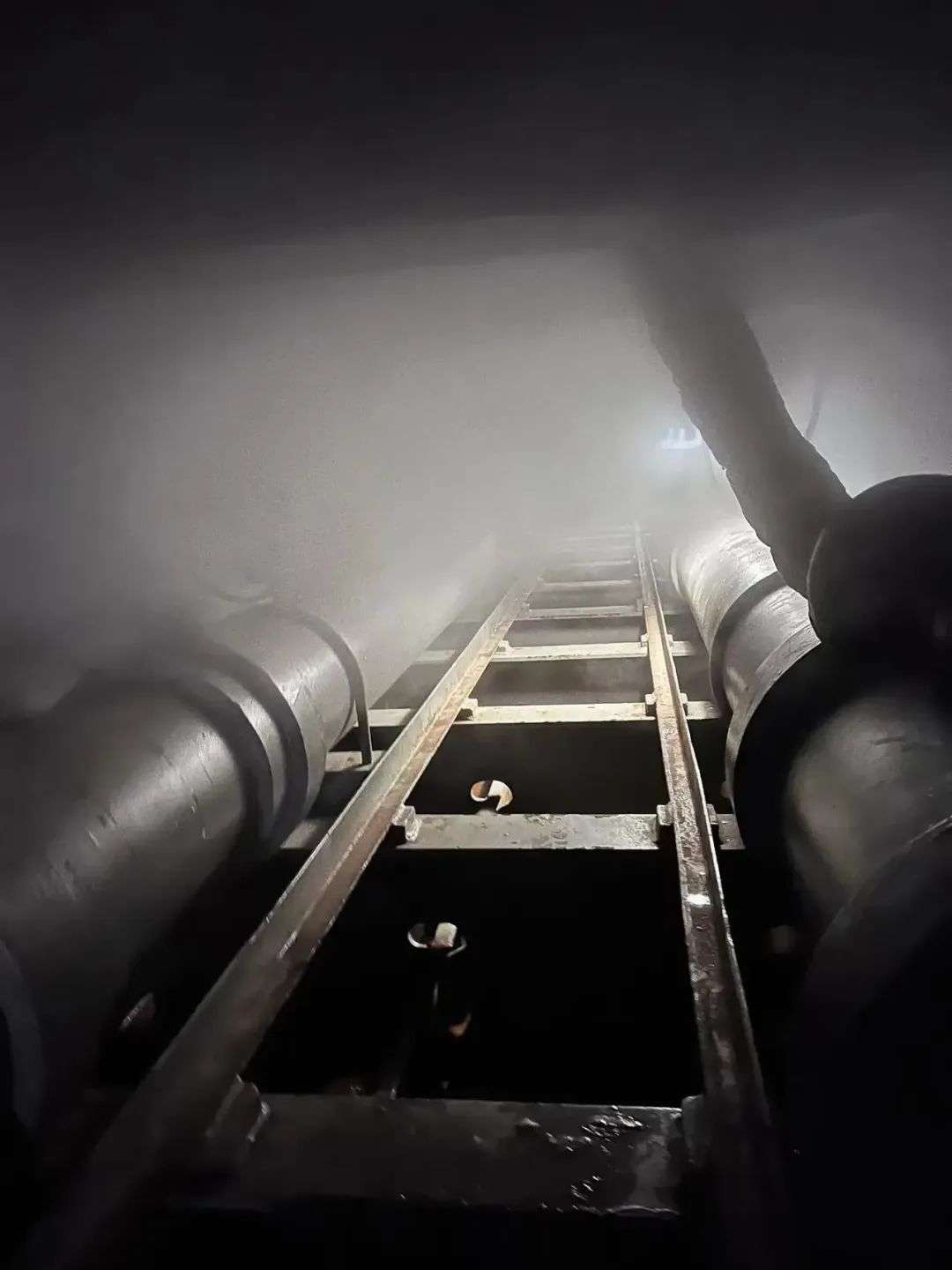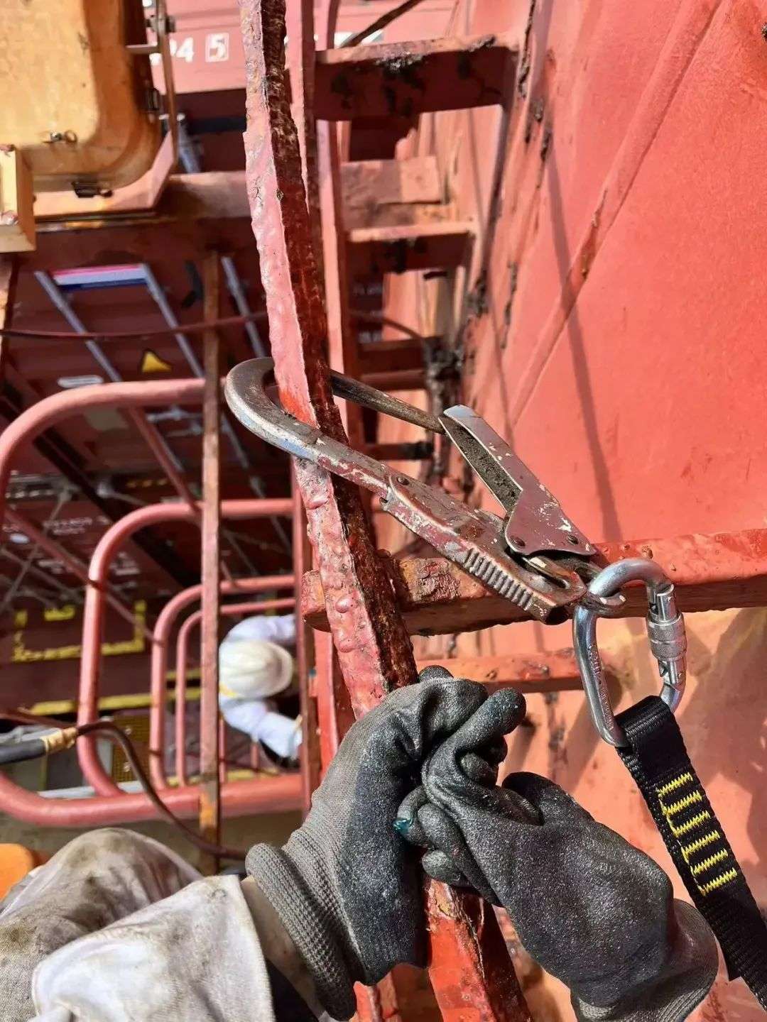 爬完吊塔的两天后,她又跟着去到船底,一个用来装管道的箱体。但又一次,没得到上手机会,只能当安全员——隔一段时间呼叫一下进入的人,防止他们出现意外。
