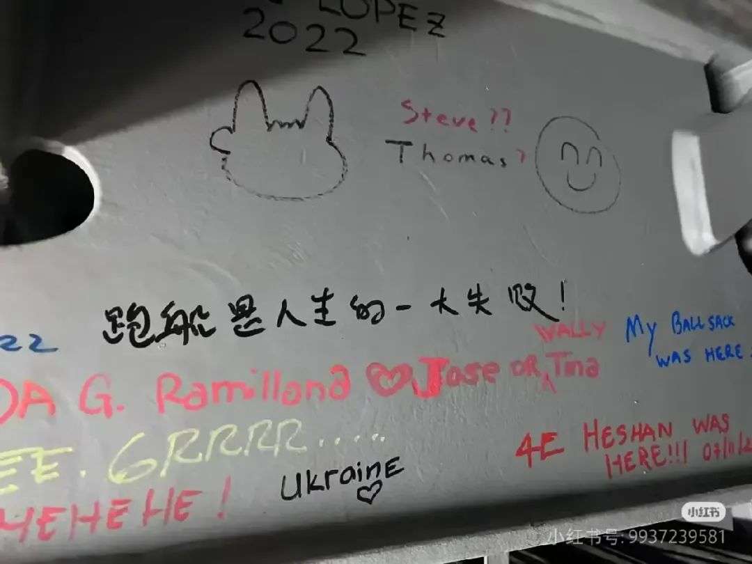 船底的箱体是船上的秘密花园:年轻的船员们会用马克笔写下“到此一游”、恋人的名字、脏话,或者一句中文“跑船是人生的一大失败!”借着递送工具,她终于进去了,这艘船很新,还没人留言,这个2000年出生的中国女孩匆匆在高处留下了第一笔,她自己,一个女海员的名字。