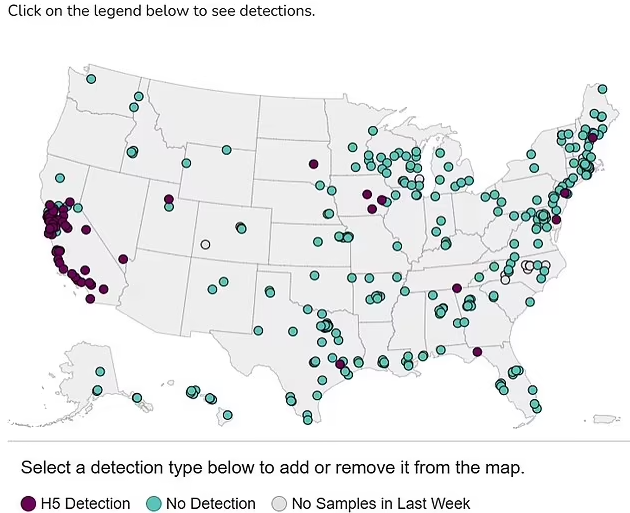 全美范围内H5N1 已在美国确诊 68 例人类感染,其中大部分病例发生在加州。已有 4 例住院,1 人死亡。专家警告:实际感染人数可能被低估,疫情可能比官方统计的更广泛。