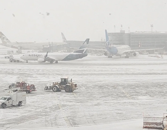 由于天气恶劣,蒙特利尔国际机场周日紧急取消了226个航班。截至周一上午9点半,500个航班中就有有94个被取消,大批旅客滞留。