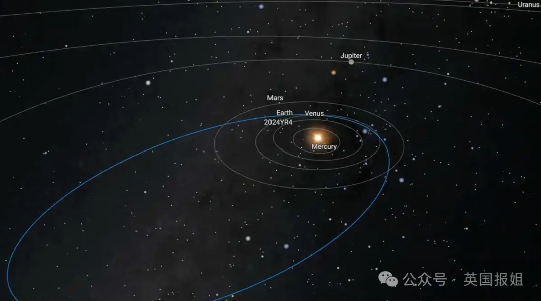 (紫线为2024YR4绕日轨道,蓝线为地球绕日轨道)