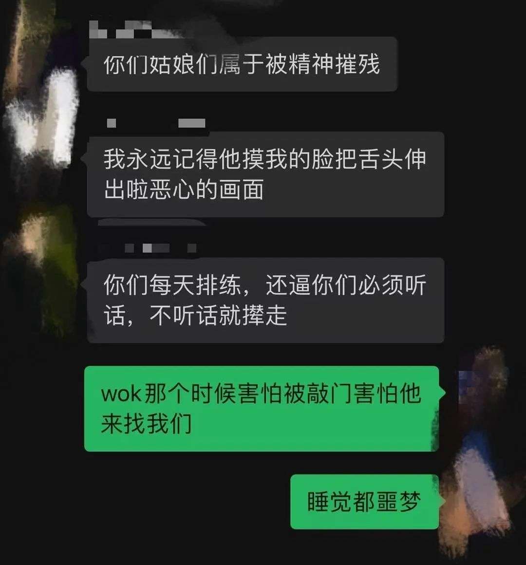 李女士还表示,后来她在和同组的演员聊天时得知,不仅仅是她遭受过这样的事情,组里还有几名当时的女演员也有类似经历。“那个时候,我很害怕,经常做噩梦,睡觉都要开着灯,把手机静音,害怕和他对视,只要见到他就得需要人陪,不能跟他单独见面。”