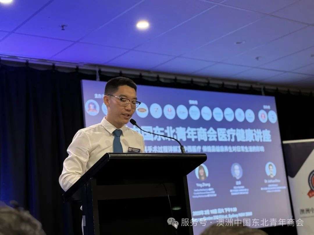 活动开始,澳洲中国东北青年商会执行会长Austin Guo代表主办方致辞。Austin向各位专家学者及与会嘉宾表示衷心感谢,并简要回顾了青年商会近年来在促进中澳青年交流、推动健康产业发展等方面所做的努力。他强调,健康是人生最宝贵的财富,希望通过本次讲座,让更多人关注医学创新和科学养生,提高生活质量。