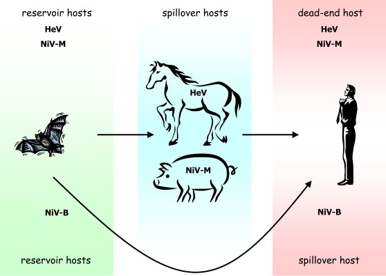 副粘病毒科的亨尼帕病毒属包括三种已知病毒——亨德拉病毒 (HeV)、尼帕病毒 (NiV) 和 CedPV。这三种里面,亨德拉病毒 (HeV) 和尼帕病毒 (NiV) 都可导致人类和动物严重的、通常是致命的神经和呼吸系统疾病。