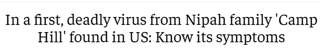 《在美国发现首例尼帕病毒科“Camp Hill”致命病毒》