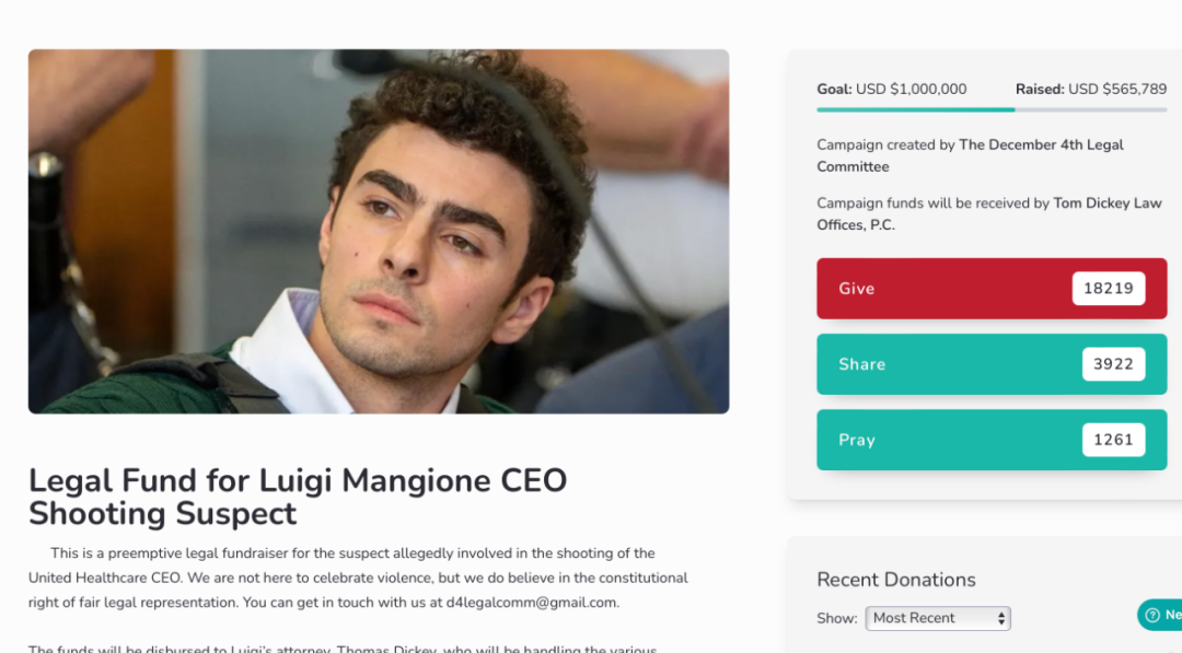 除了到场的支持力量,网络上对本不差钱的路易吉进行了大量捐赠。热心网友早在12月初就开办了为路易吉筹集法律资金的页面,至今捐款已经超过56万美元。