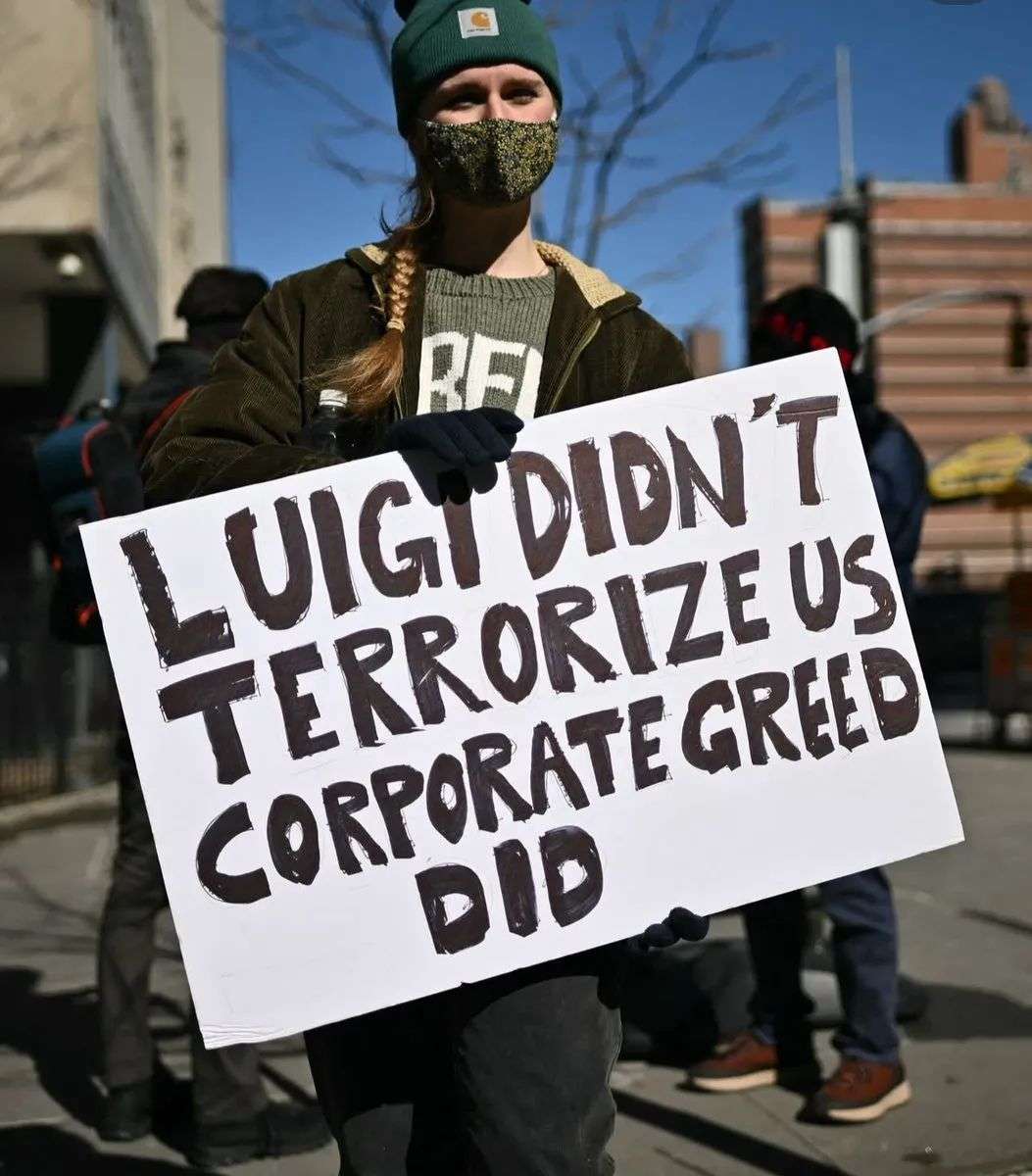 “阶级团结!这个人做了一件非常勇敢和极端的事情,帮助我们团结起来反对统治阶级。所有美国人都应该享受没有暴利的医疗保健。”