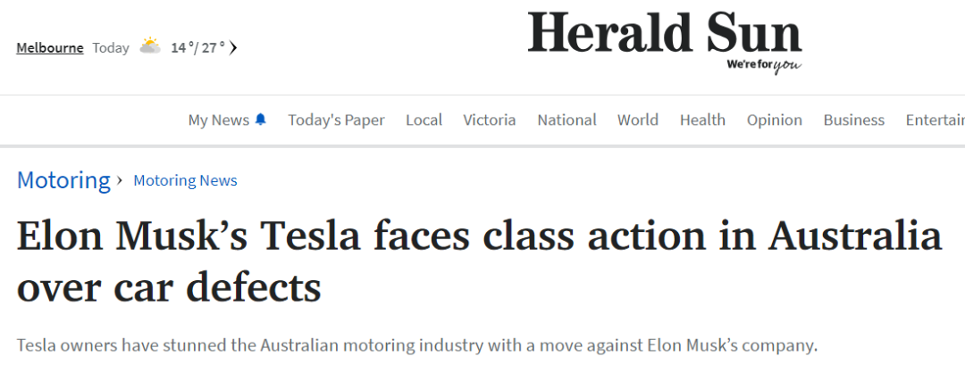 澳洲的特斯拉车主对特斯拉发起了集体诉讼,指控特斯拉出售有缺陷的车辆,并且夸大车辆的性能。