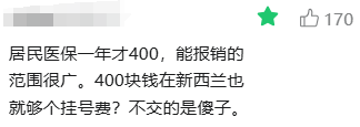 “一年400块的居民医保,能报销的范围很好,在新西兰只够交个挂号费。”