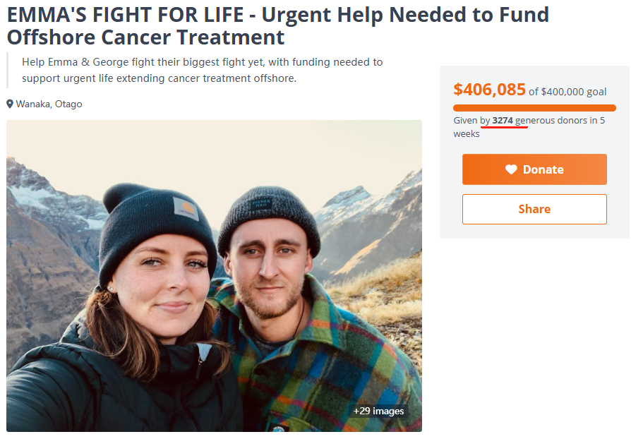 求助发出后,仅四个小时就筹集到了10万纽币,两天后筹集到了20万,短短5周内就达到了40万纽币的目标,截至发稿有3274位捐助者伸出援手。