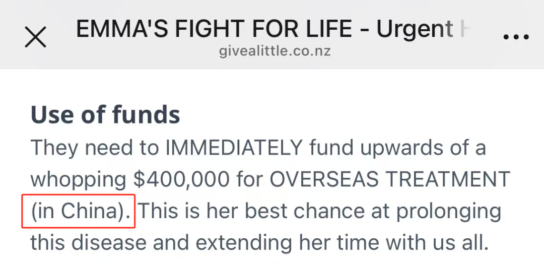 他们在Givealittle上发起募捐,所得捐款将用于在中国上海一家私立医院接受CAR-T治疗。