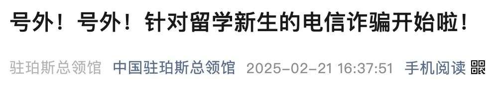 收藏警方和使领馆连发警告!留学生和家长一定注意!中国留学生刚落地仅一周就信息泄露被盯上!