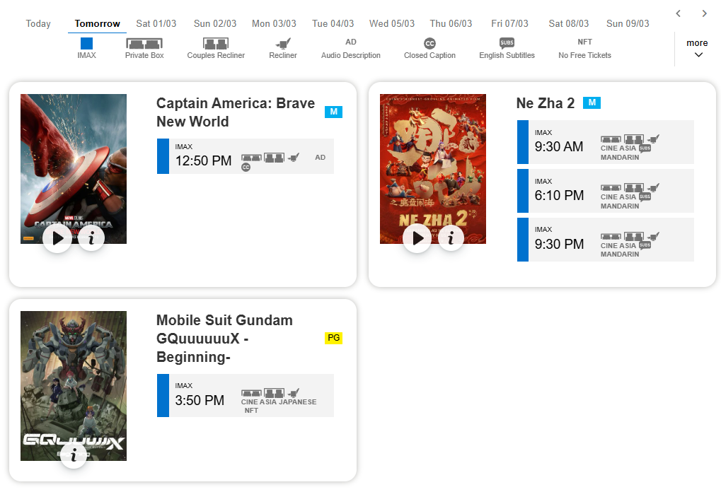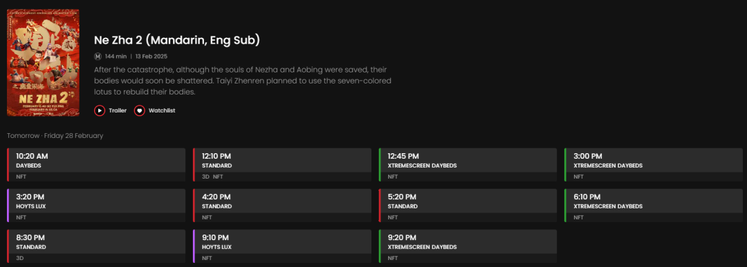 而IMAX Sydney几乎每天都会安排2~3场《哪吒2》,而其他电影只排一场。
