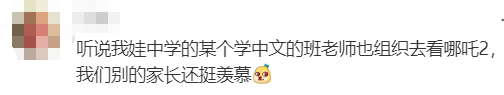 “听说我家娃中学的一个学中文的班老师也组织去看《哪吒2》,可把我们别的家长羡慕坏了...”