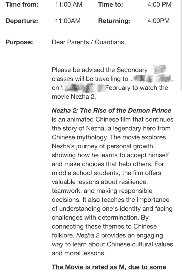 甚至南澳的家长也表示,女儿学校的中文老师也组织了学生们看《哪吒2》的活动。