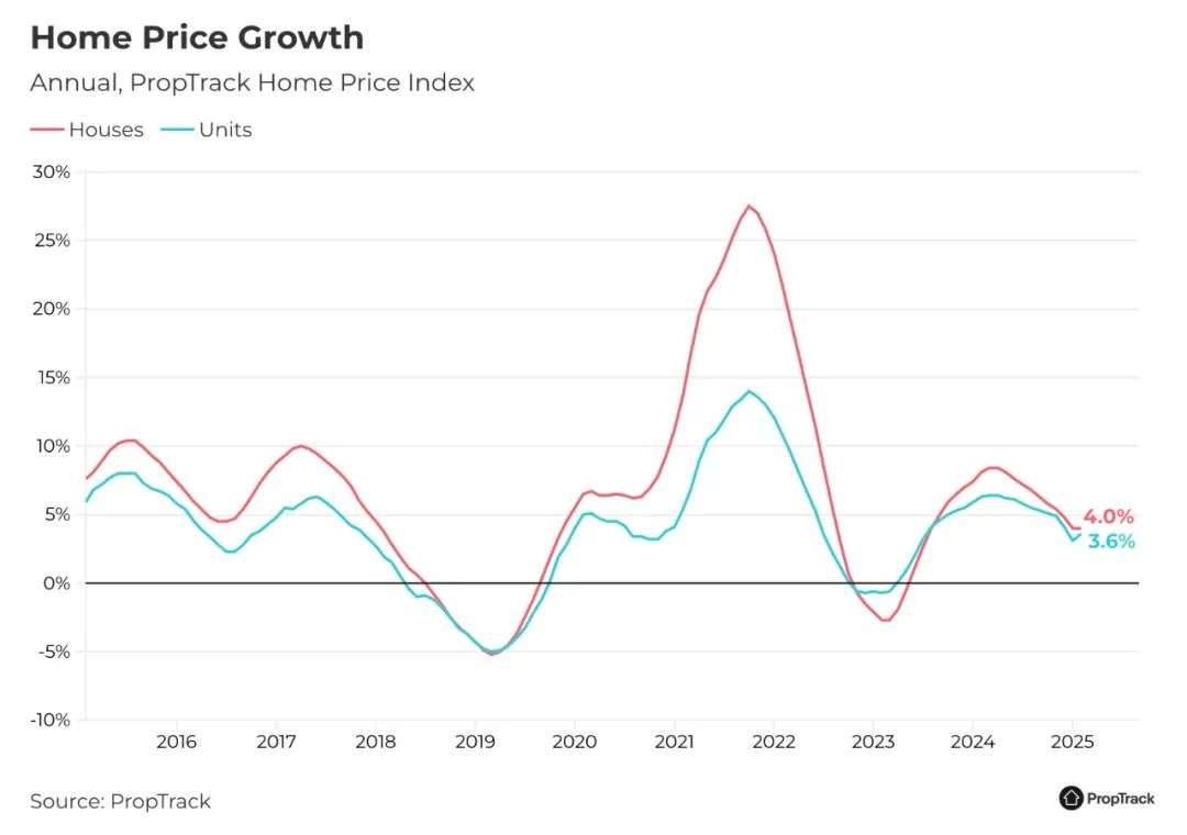 目前,独立屋价格比 2024 年低了 2.56%(约 2.3 万澳元),公寓价格也比去年低了 2.17%(约 1.25 万澳元)。
