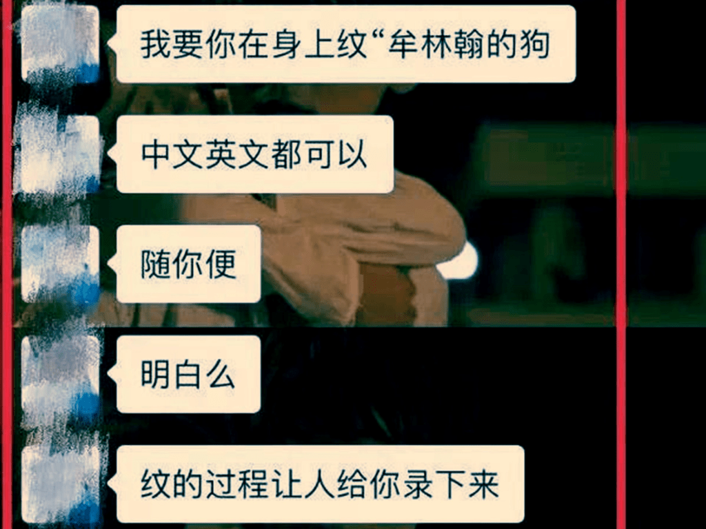 牟林翰要求女友身上纹上「我是牟林翰的狗」。