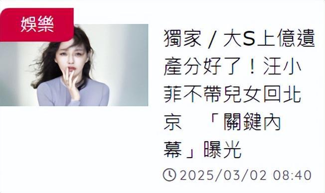 大S去世后,围绕S妈、汪小菲、大S遗产分配的相关消息依然成为各方关注焦点。