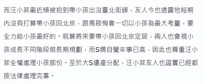 至于大S遗产分配的问题,友人也证实已经都按法律处理完毕。