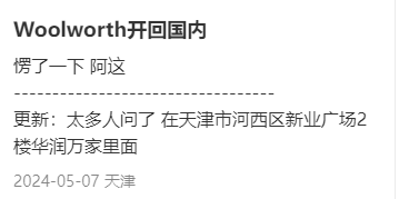 似乎Woolworths的进入中国的第一站就是在天津,很多网友都表示在天津看到了Woolworths的专柜。